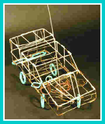 5. Now build a box (your jeep) to attach to the axle. Use a thin, easily bendable wire to attach the two pieces. Be sure to leave a gap at the joint so that the wheels are able to spin.